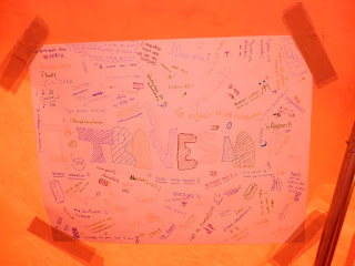 Al llegar cada curso hizo un mural explicando que les había parecido la travesia, y por la noche lo leímos a todo el campamento".